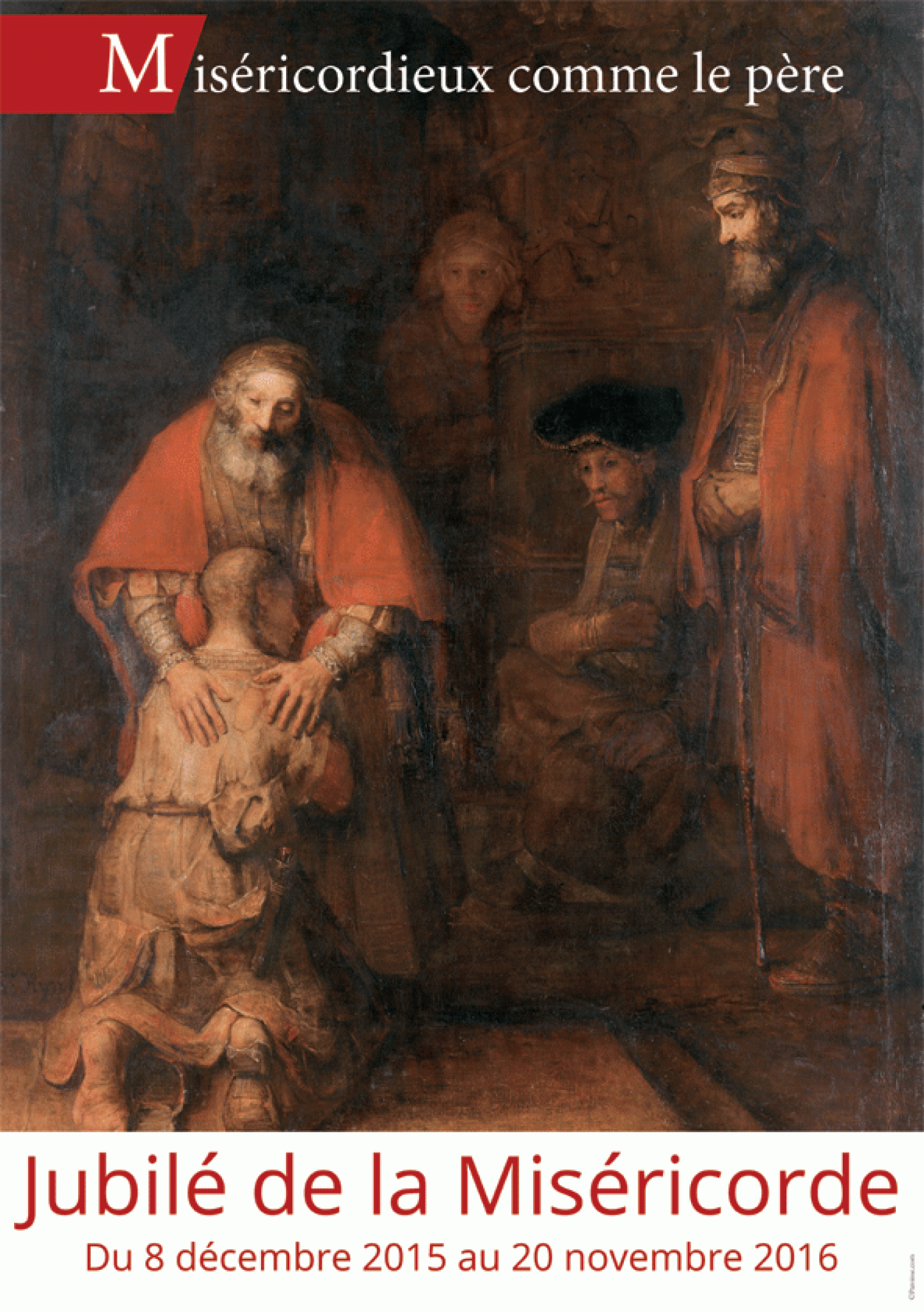 Un poster pour le jubilé de la miséricorde représentant le fils prodigue de Rembrandt, au format A2 42 cm × 59,4 cm. Pour solenniser le Jubilé de la miséricorde. Idéal pour les particuliers, les paroisses, les salles de catéchèse.