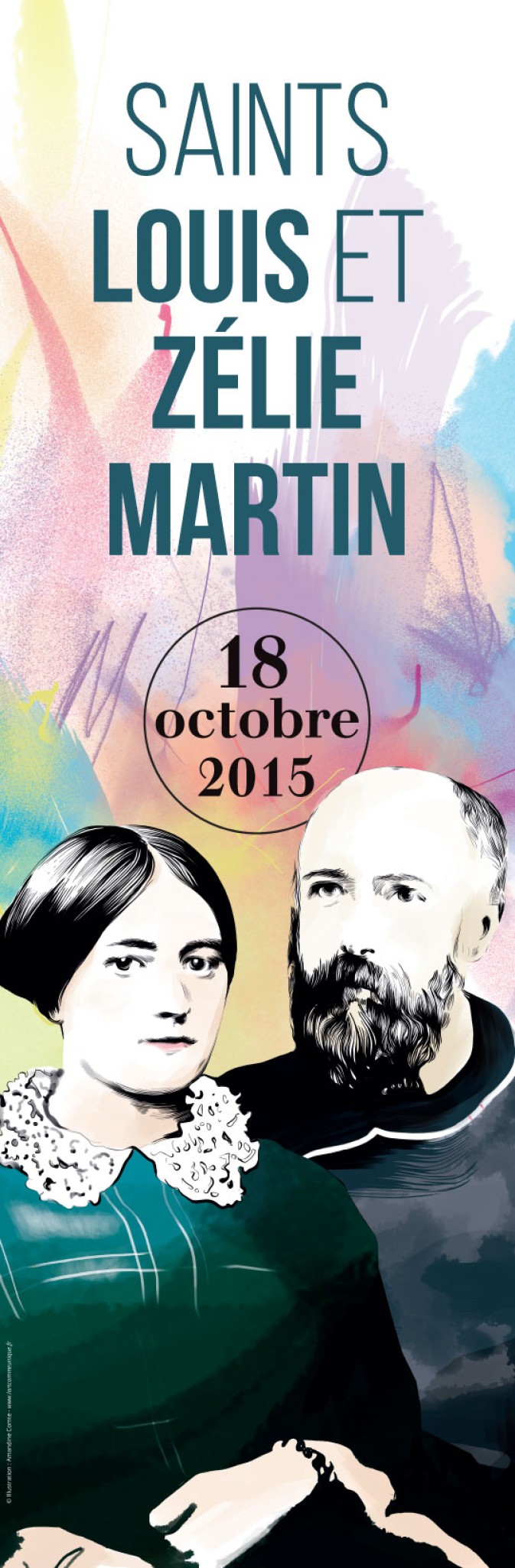 Bannière en tissu (200 g./ m²) au format 1 x 3 mètres de long. Pour solenniser la canonisation des époux Martin.