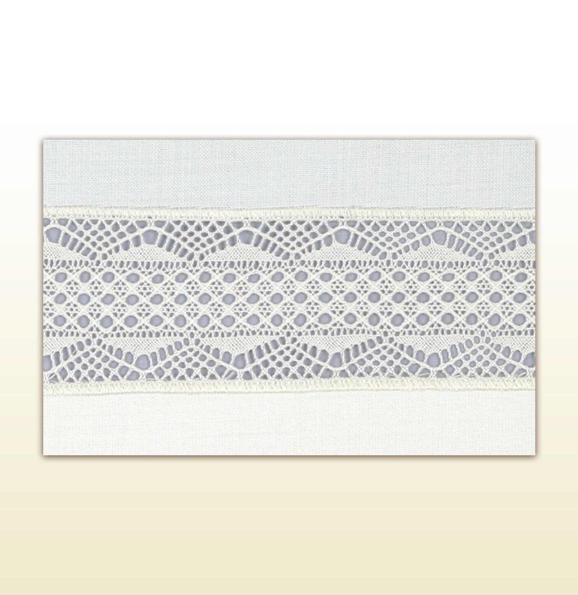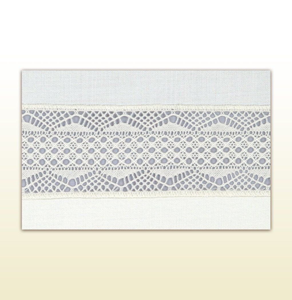 Aube liturgique en mixte polyester (65%) et coton (35 %), blanche avec encolure carrée et un entre-deux aux manches et sur le bas de l'aube. Long. de l'aube romaine 135 cm.
