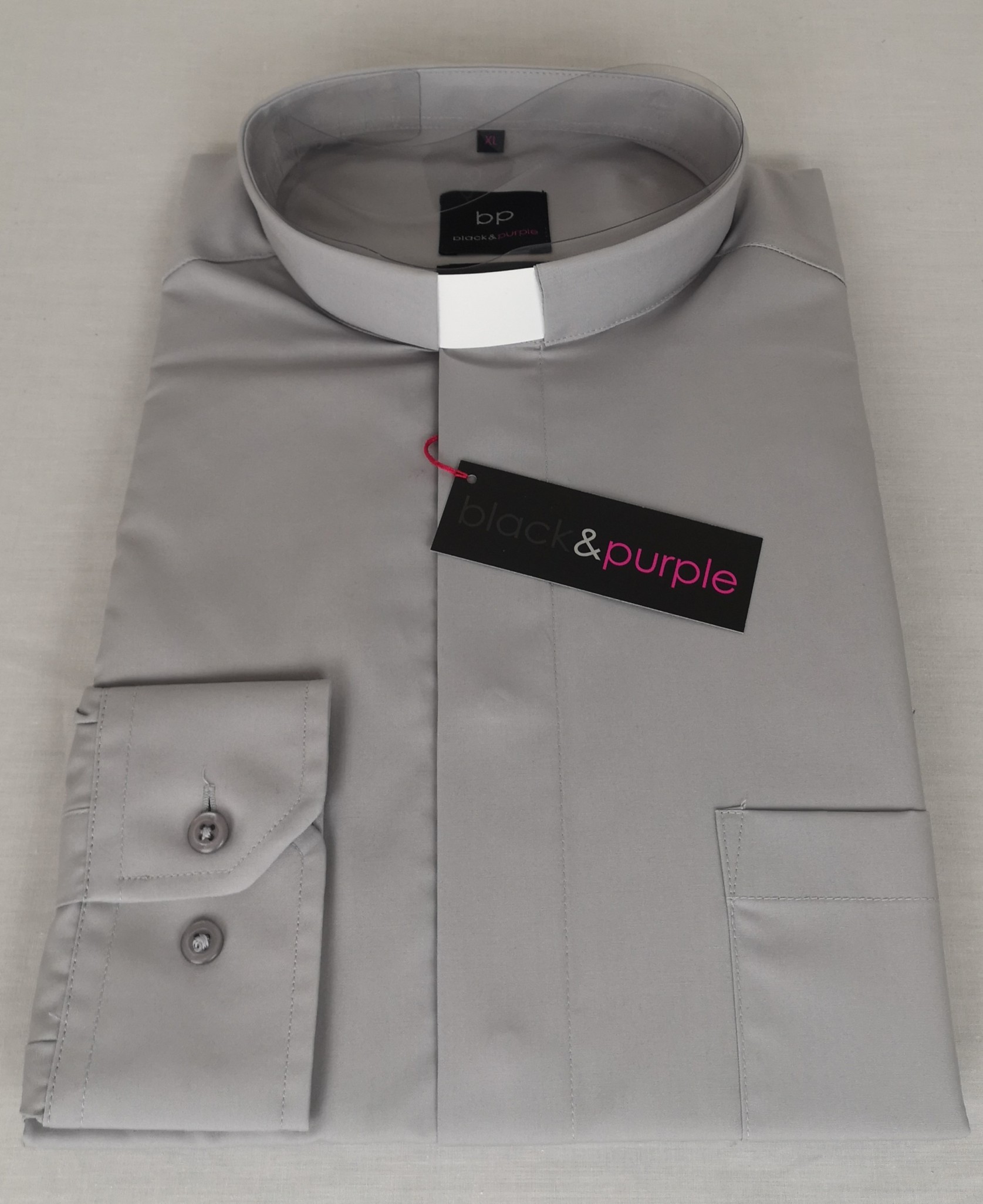 Chemise clergyman mixte polyester (45%) coton (55%) de couleur gris claire. Taille de la chemise clergyman: 4XL (équivalent 48 & 49 en tour de cou) Tour de poitrine 150 cm, longueur de manche 69 cm, longueur de chemise 83 cm. Col plastique clergyman fourni et inséré dans le col. Lavable en machine à 40°, repassage facile au fer sur faible température.