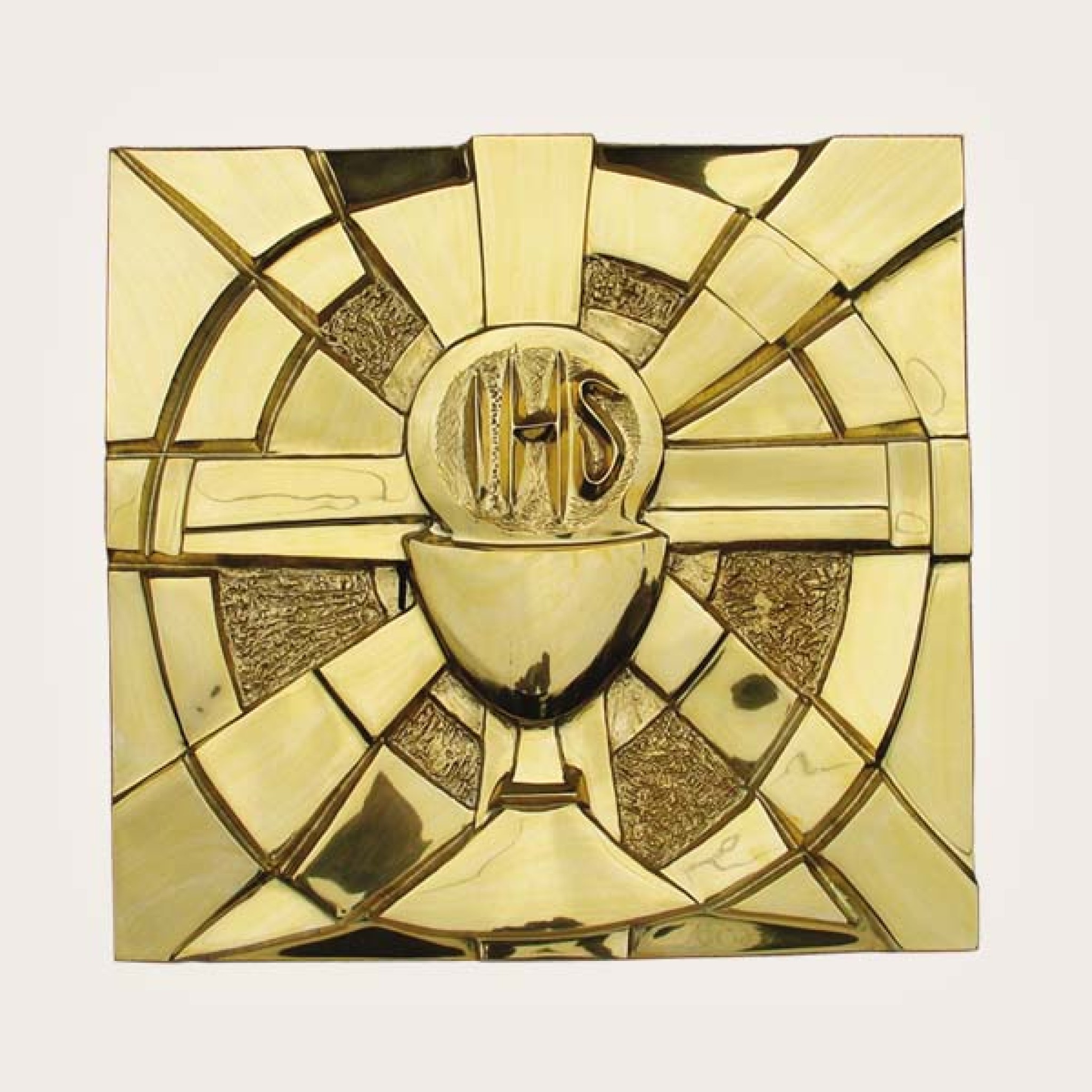 Tabernacle en laiton doré et verni, traité anti-feu. L'intérieur est en laiton doré poli et verni. Fixation sur demande prévu pour pose murale ou poser sur un support.