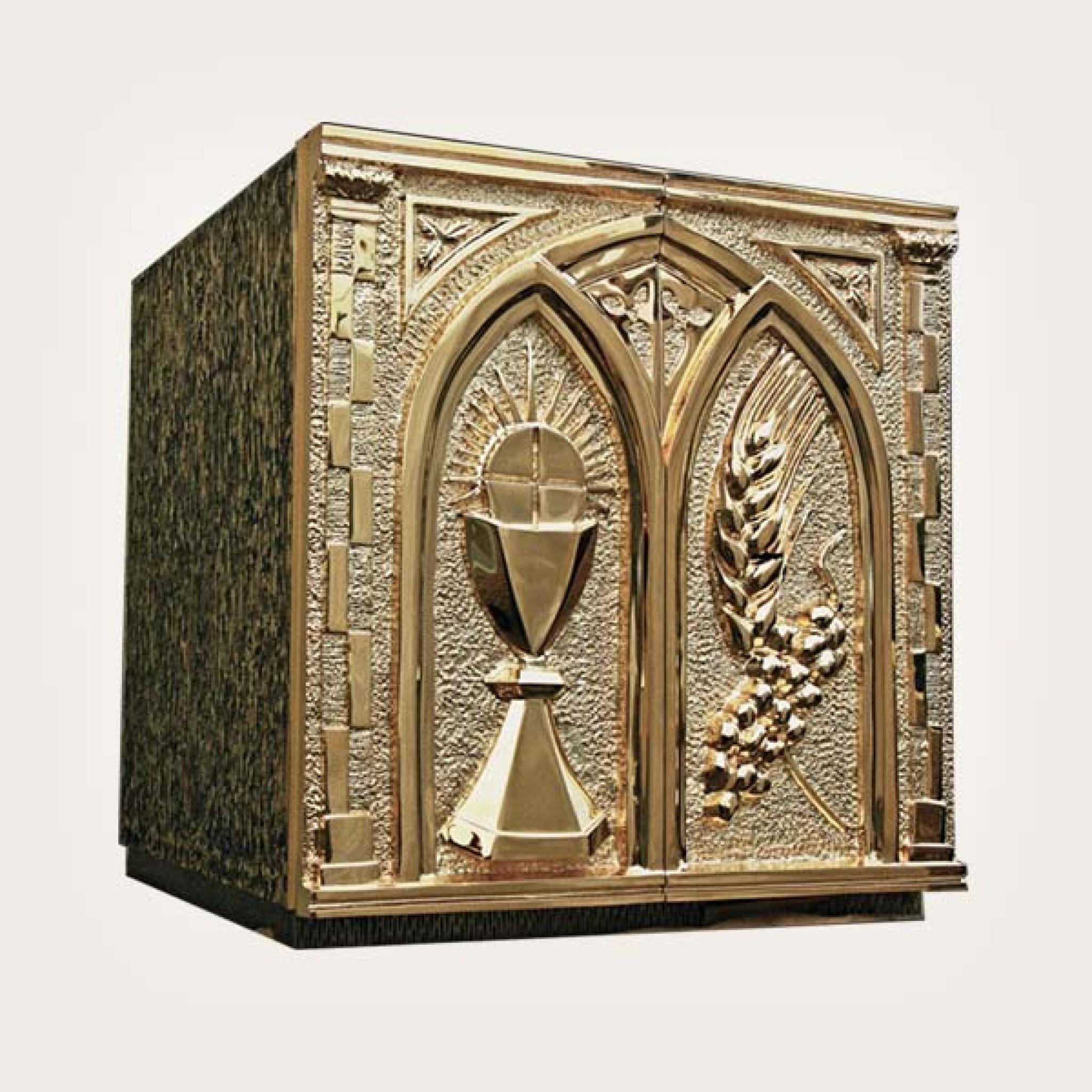 Tabernacle orné d'un motif calice vigne et épis de blé.
