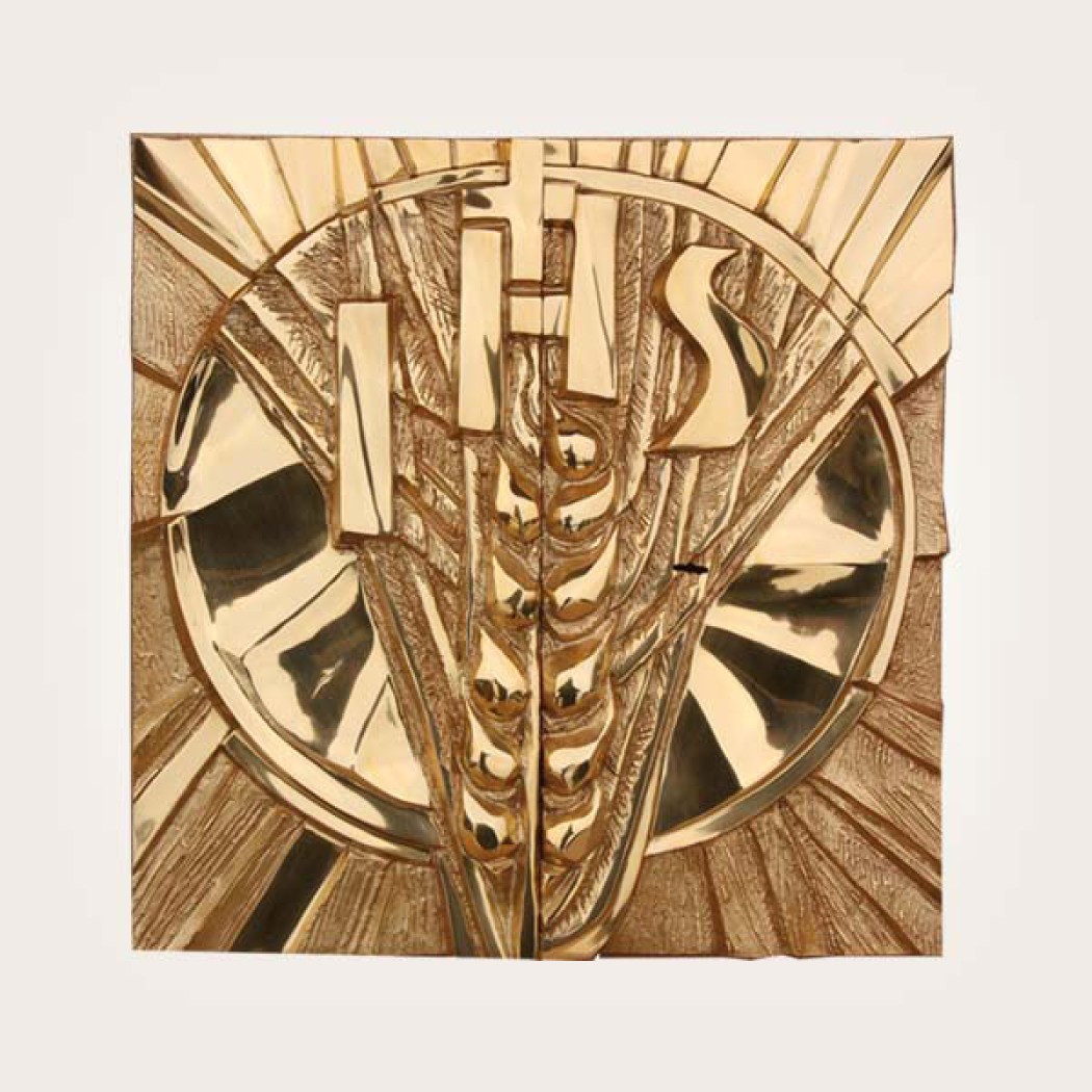 Tabernacle en laiton doré et verni, traité anti-feu. L'intérieur est en laiton doré poli et verni. Fixation sur demande prévu pour pose murale ou poser sur un support.