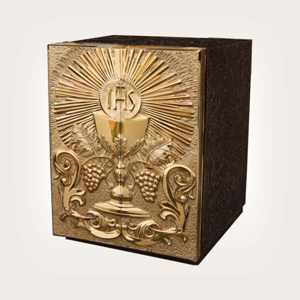 Tabernacle deux portes orné d'un motif calice, vigne et IHS.