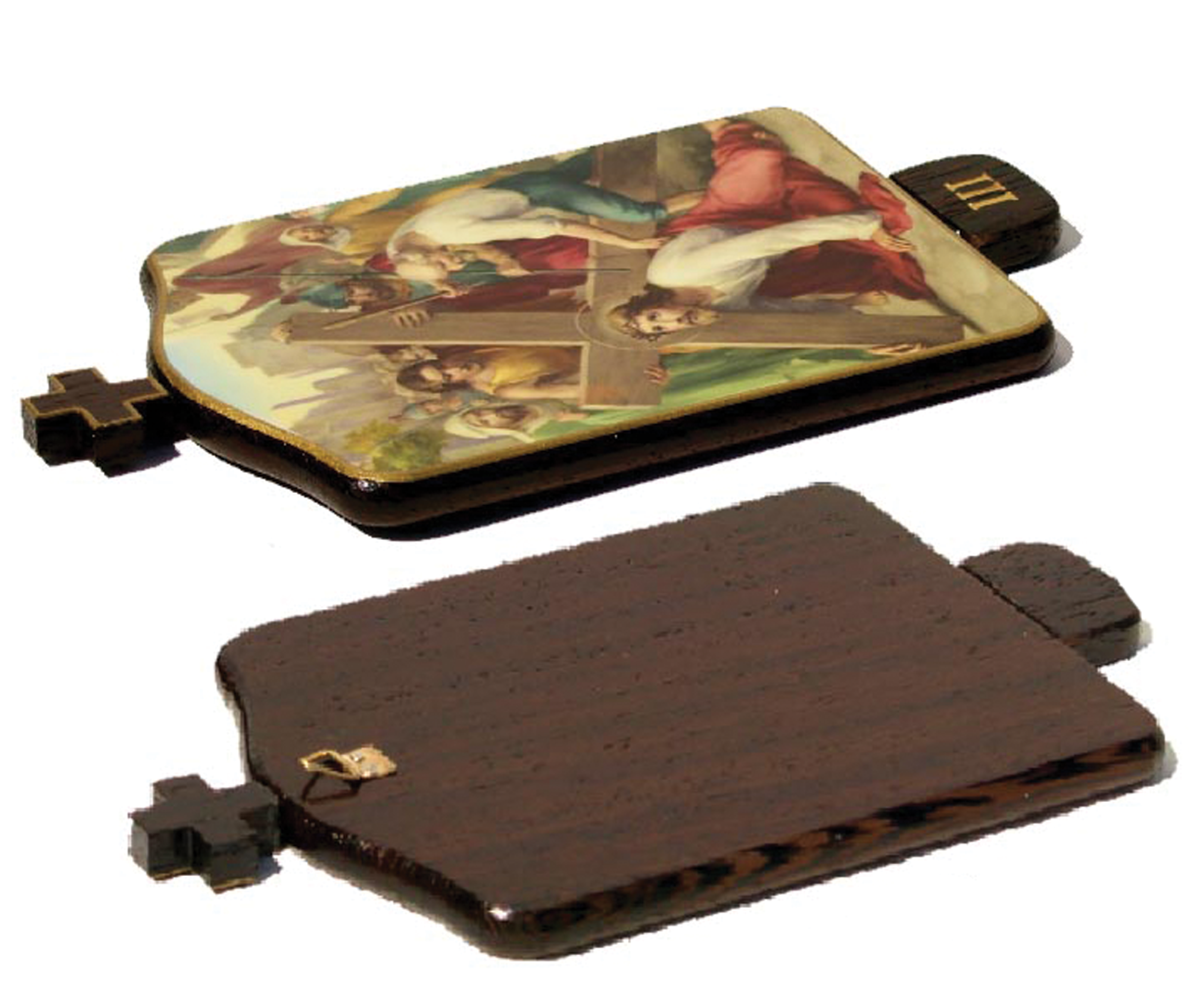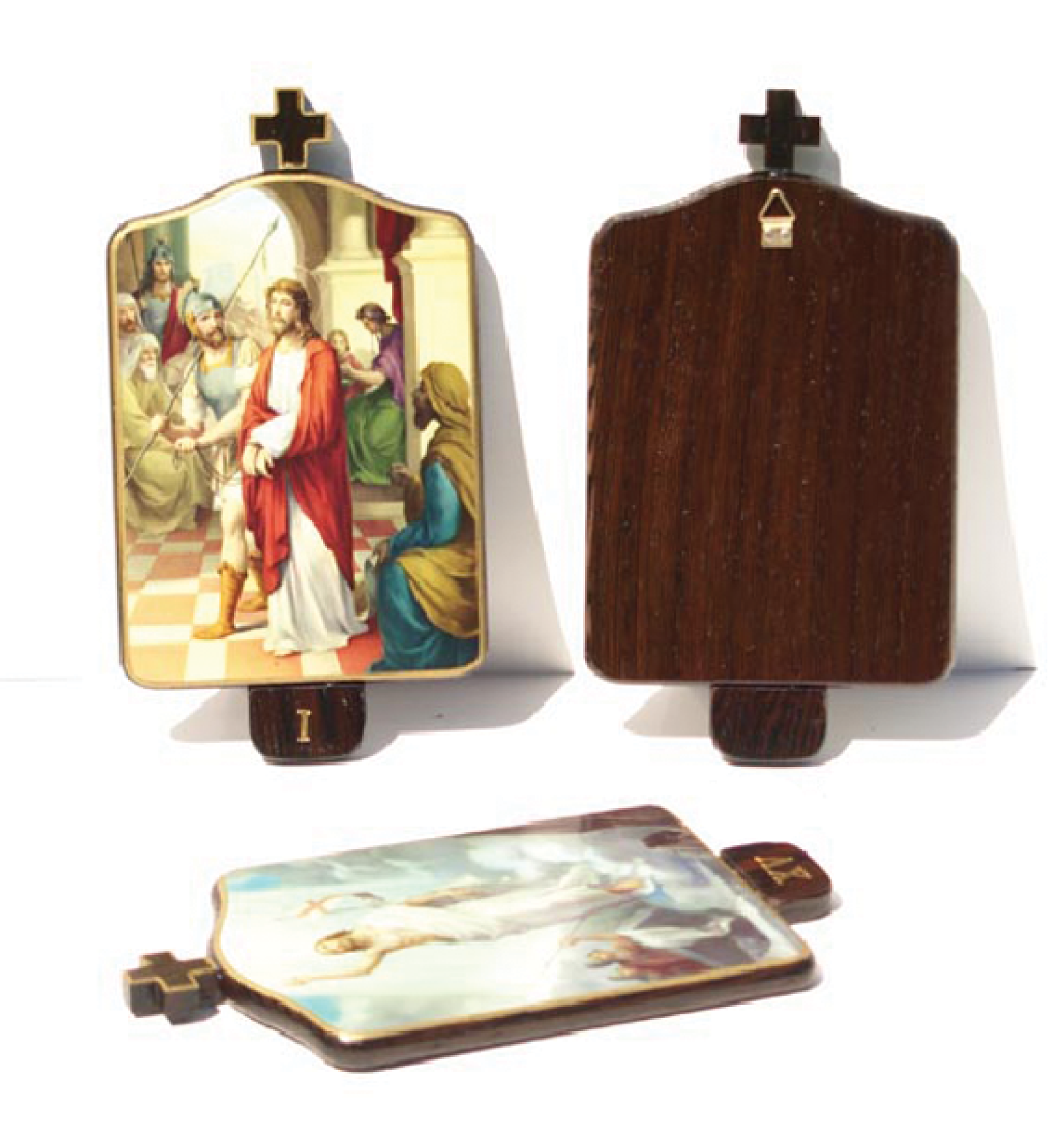 Chemin de croix en bois Wengé petit format. Avec une accroche murale au dos.