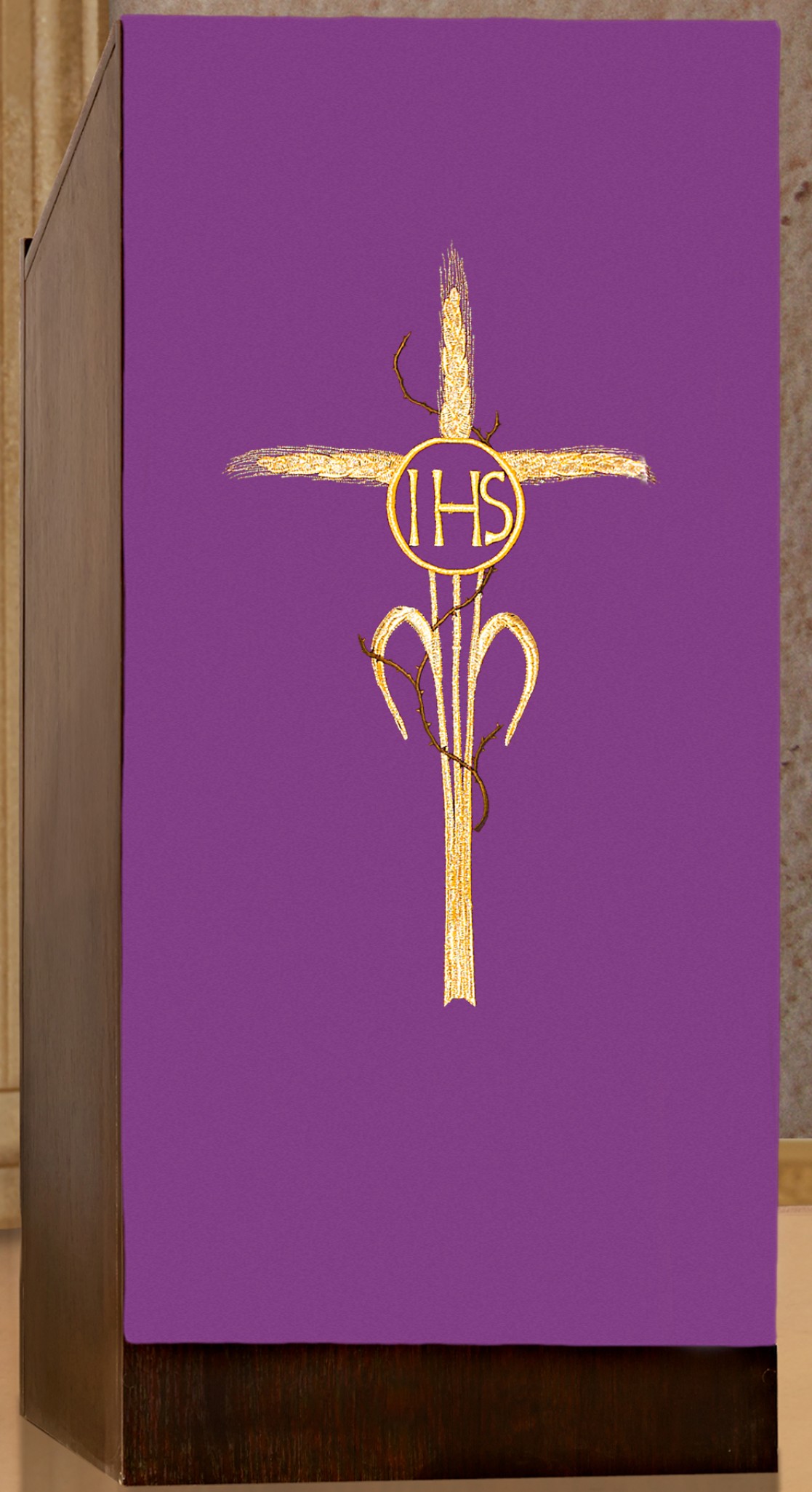 En polyester brodé machine d'un IHS et d'épis de blé, dimensions 55 cm de large, 2,50 m de longueur.
