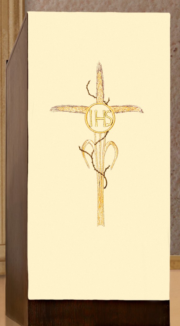 En polyester brodé machine d'un IHS et d'épis de blé, dimensions 55 cm de large, 2,50 m de longueur.