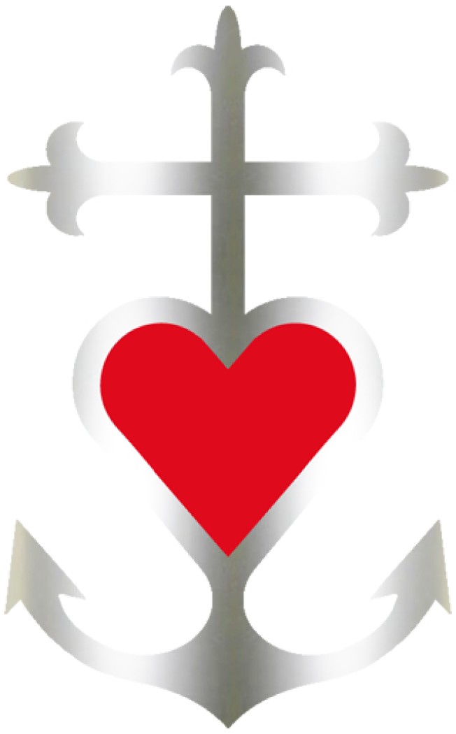 Emblème formé d'une croix latine, d'une ancre et d'un coeur. Elle représente les trois vertus théologales.