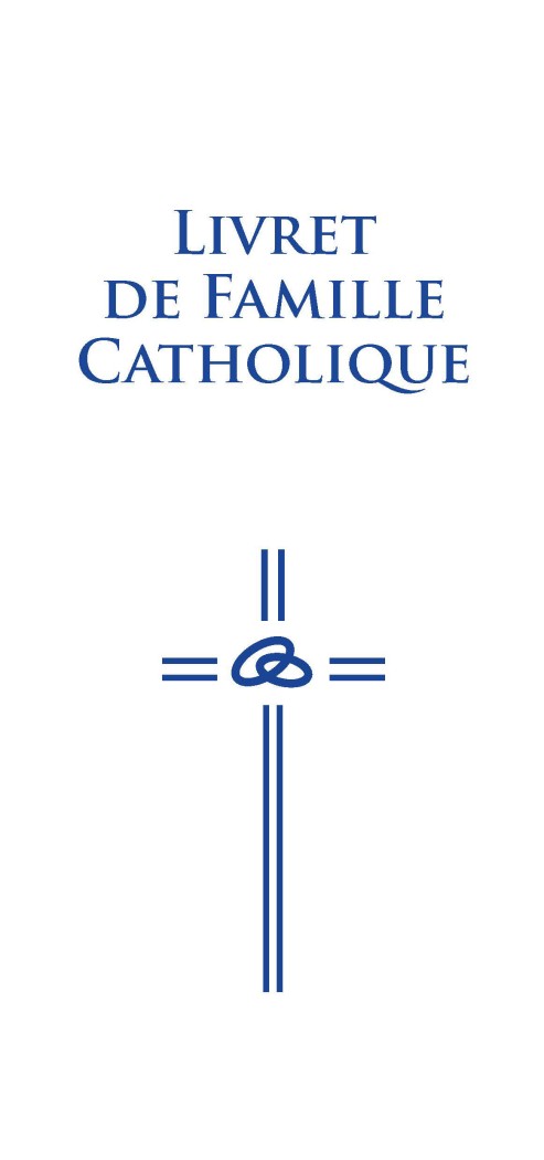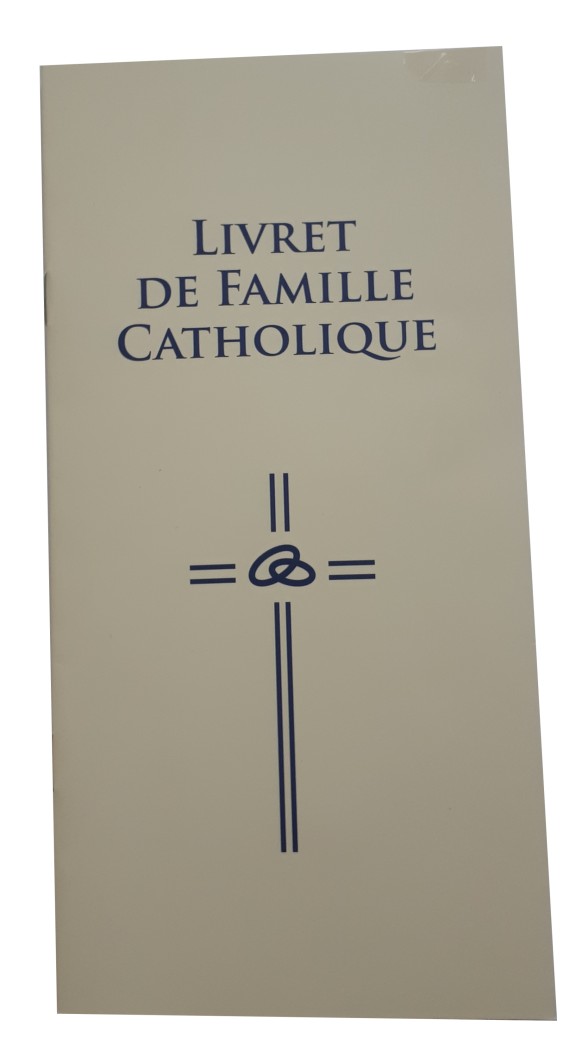 Livret de famille catholique 20 pages au format 10,5 par 21 cm. 2 couleurs, couverture cartonnée crème ornée d'une croix avec des anneaux au centre.