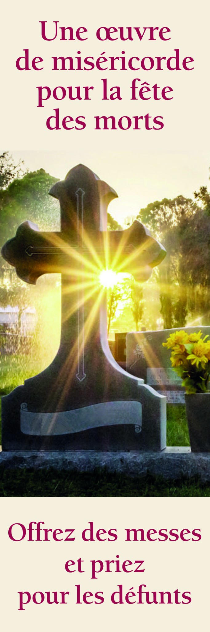 Bannière en tissu (200 g./ m²) au format 1 x 3 mètres de long pour inciter à la prière lors de la fête des morts.
