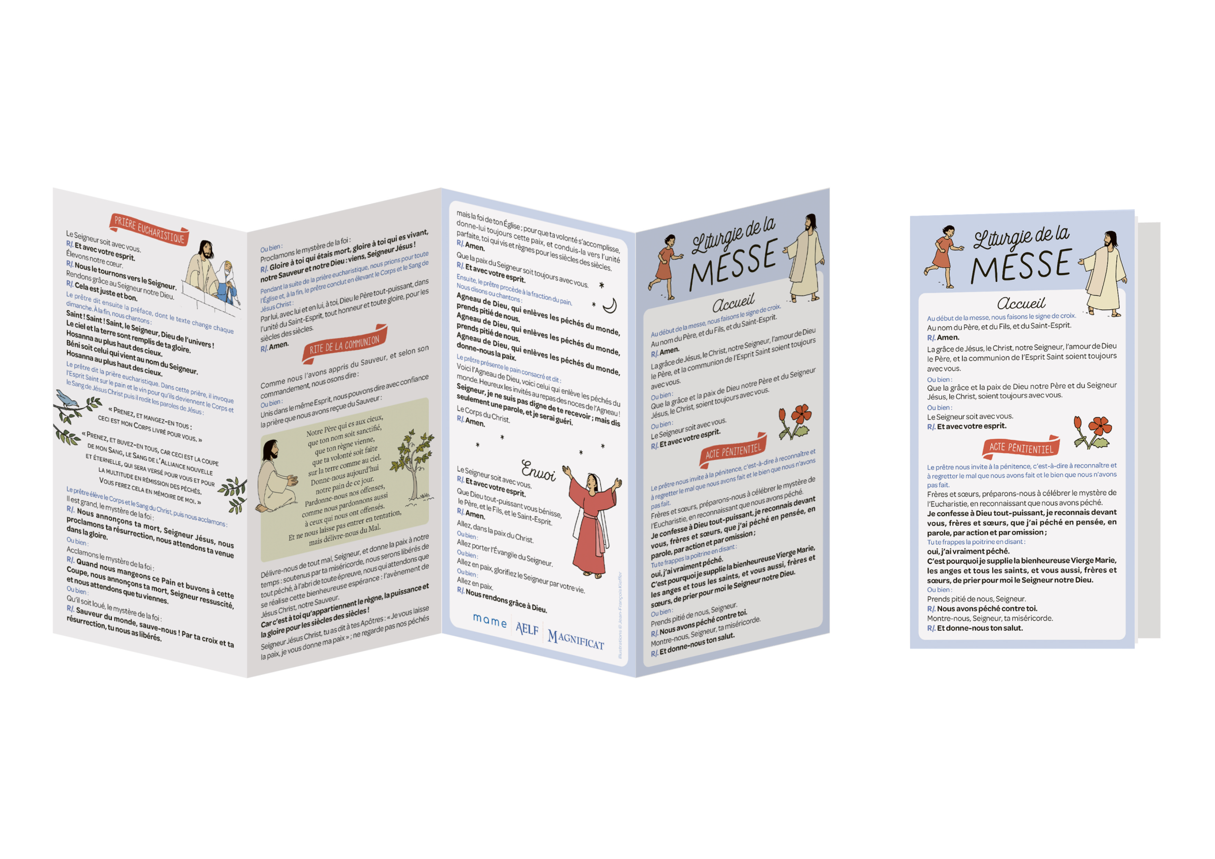 - Un dépliant conçu spécialement pour les enfants, pour leur permettre de suivre la messe - Les dessins de Jean-François Kieffer : adaptés à tous les publics et qui ne cessent de séduire des générations d'enfants. - Une fabrication de qualité qui allie élégance et solidité
