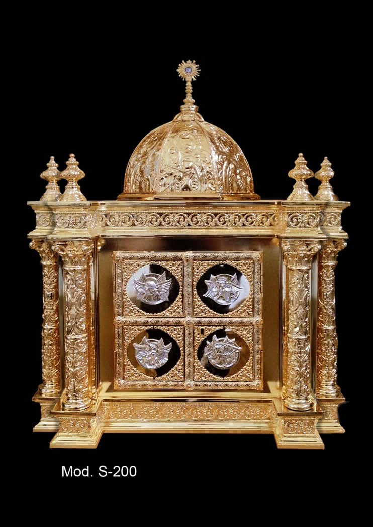 Ce modèle est entièrement réalisé en laiton. Ce sont des pièces en laiton repoussé et ciselé : L'armure du Tabernacle est en Bois entièrement