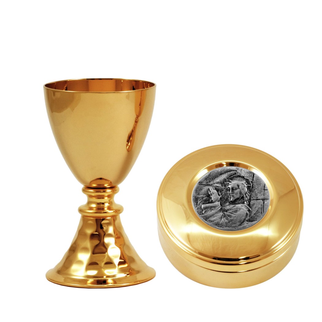 - Calice en laiton doré à base martelée. Le calice mesure 10,5 cm de haut. avec coupe diamètre 6 cm. et peut contenir jusqu'à 80 ml de vin.