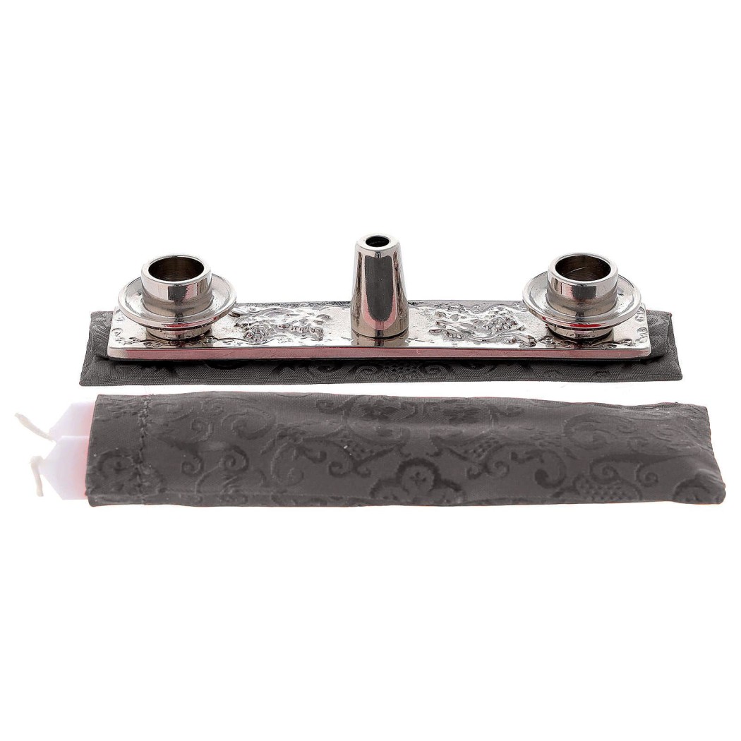 - Croix pastorale et bougies en cire avec bougeoir en tissu coordonné.
