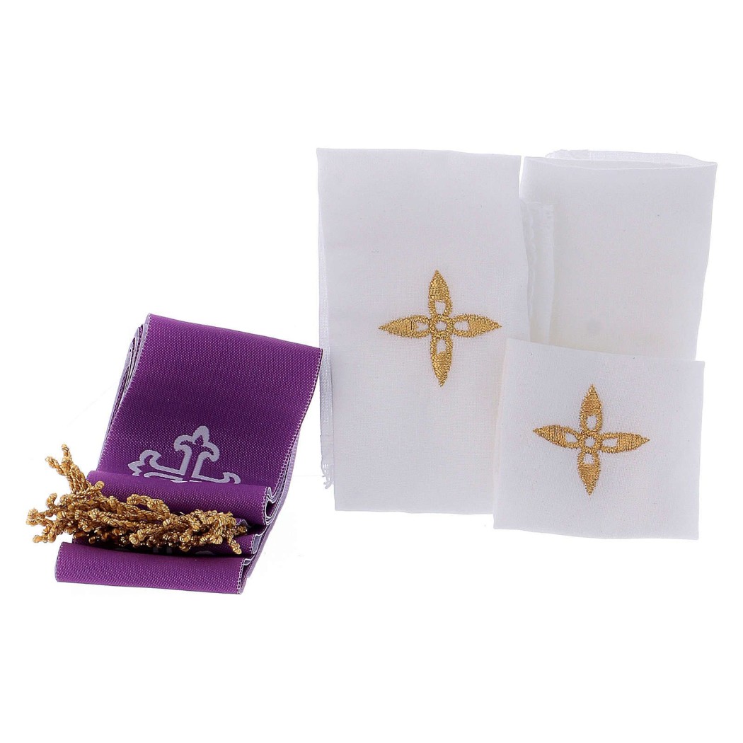 - Lot de 3 nappes 100% coton avec croix brodée en fil doré.