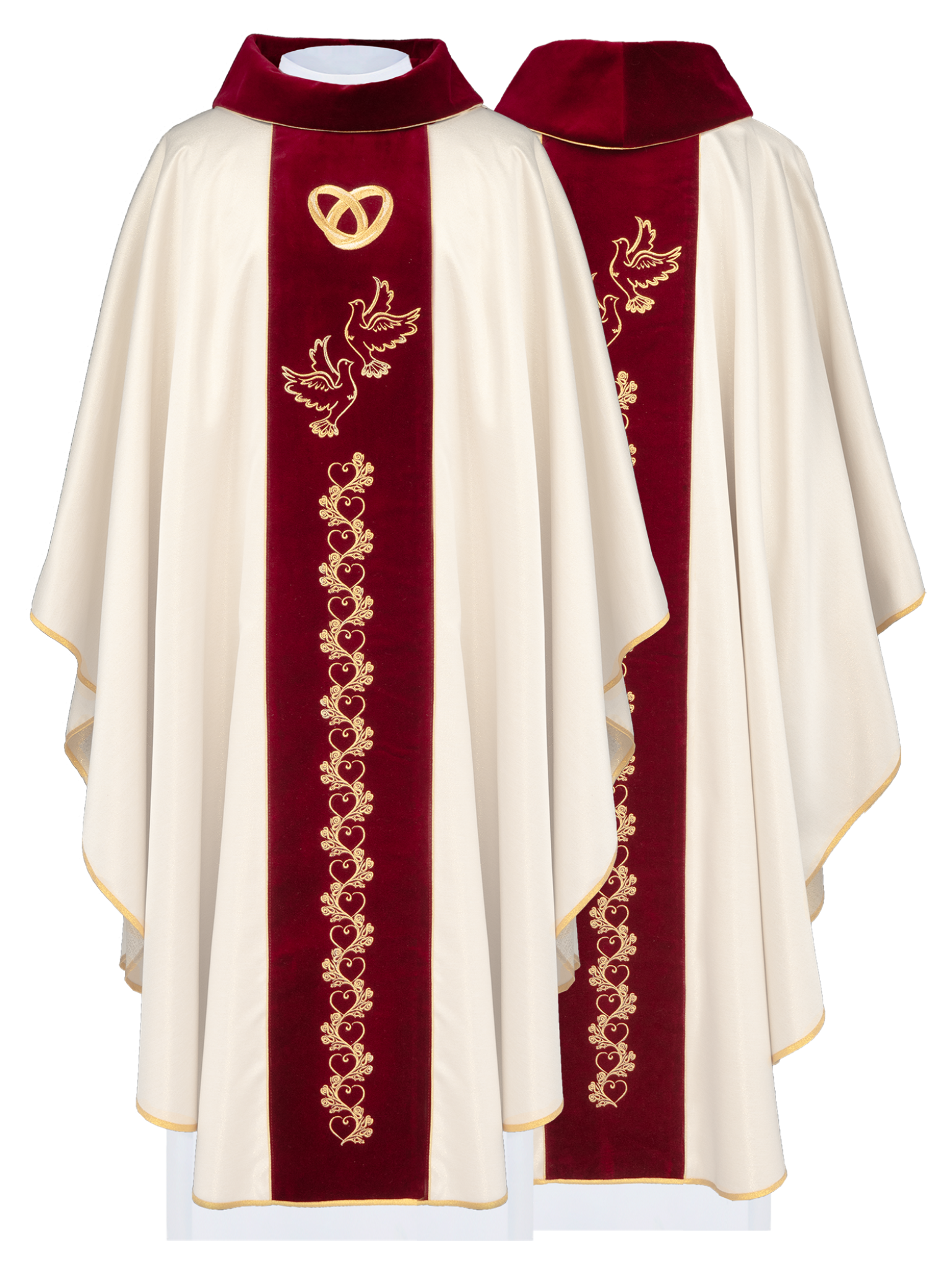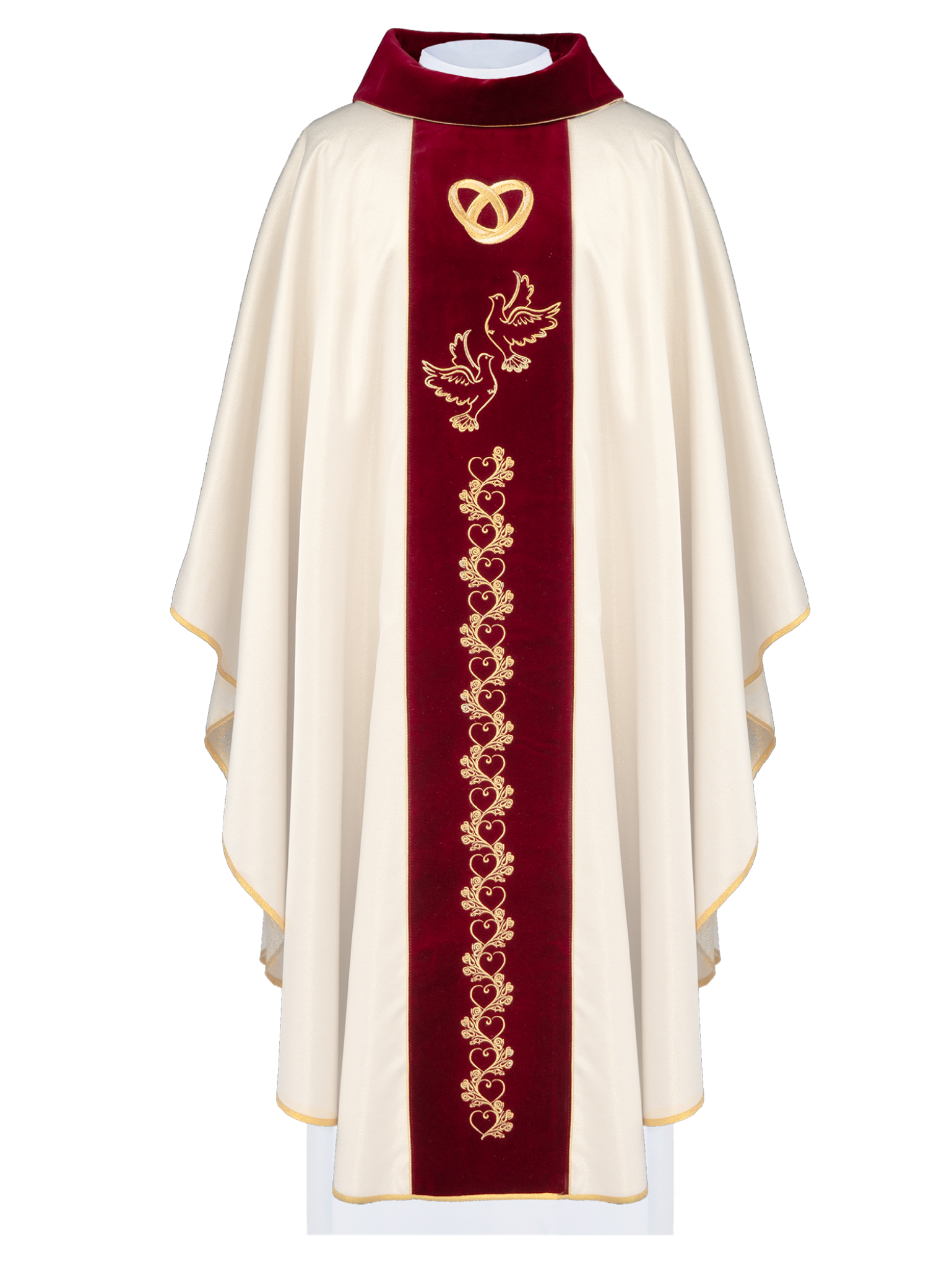 Chasuble de mariage en tissu uni de haute qualité. Toutes les finitions sont en satin doré.