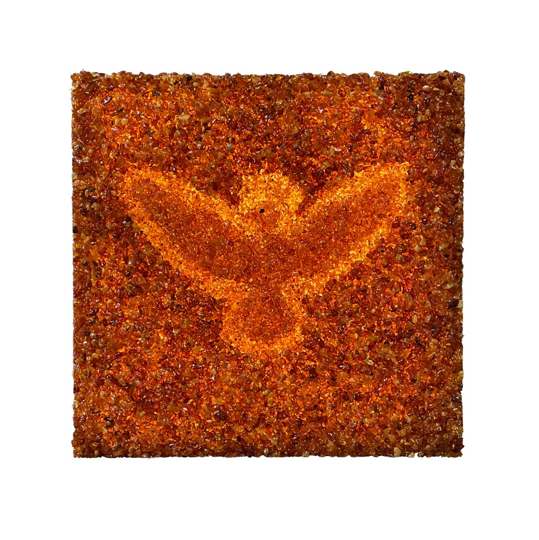 Artiste sculpteur, je crée du mobilier liturgique sur mesure avec des pierres semi-précieuses. J'aime beaucoup l'ambre: ses différentes variétés me permettent de créer des dessins, à chaque fois différents. L'ambre a beaucoup été utilisé pour le mobilier liturgique en Europe de l'Est et du Nord.