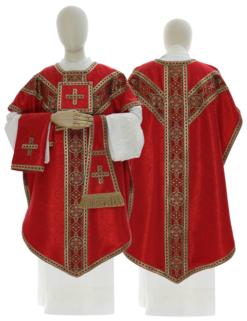 Chasuble Saint Philippe Néri - rouge damassée - Coupe Pugin