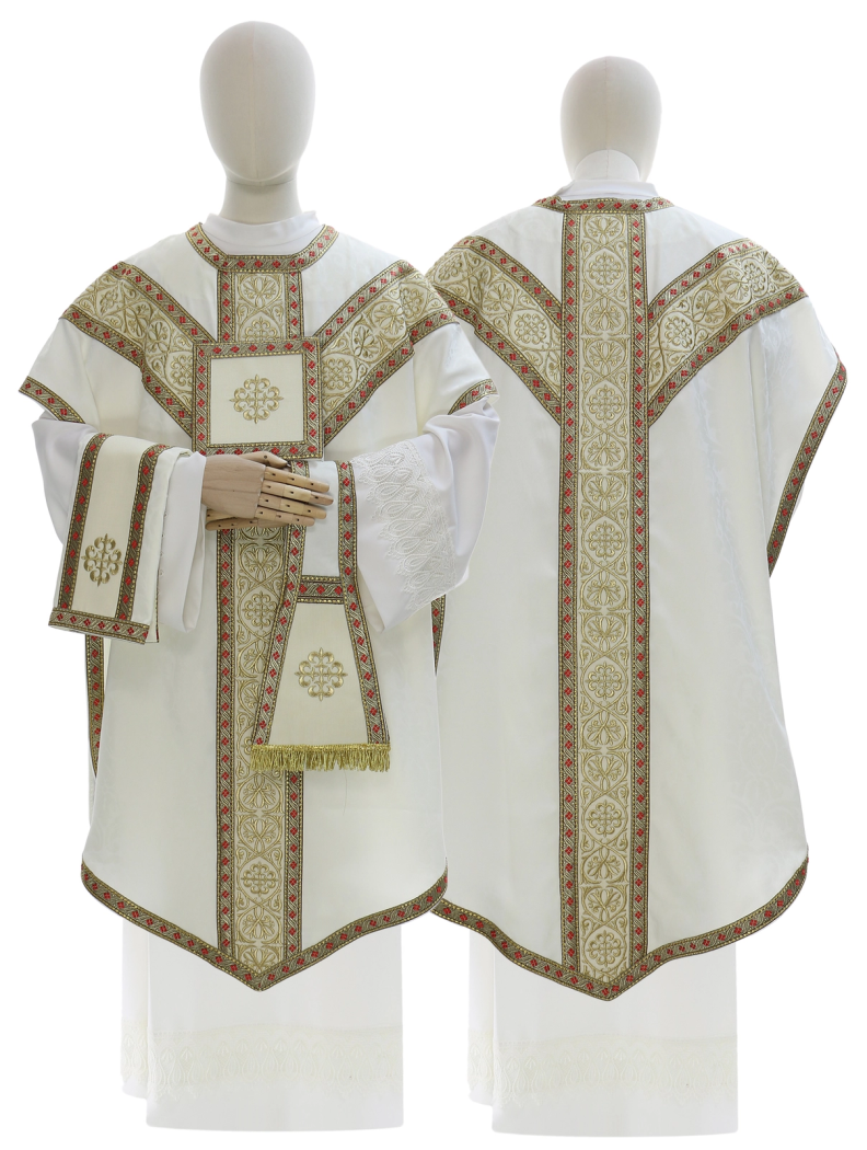 L'ensemble comprend: chasuble, étole, manipule, voile et voile du calice
