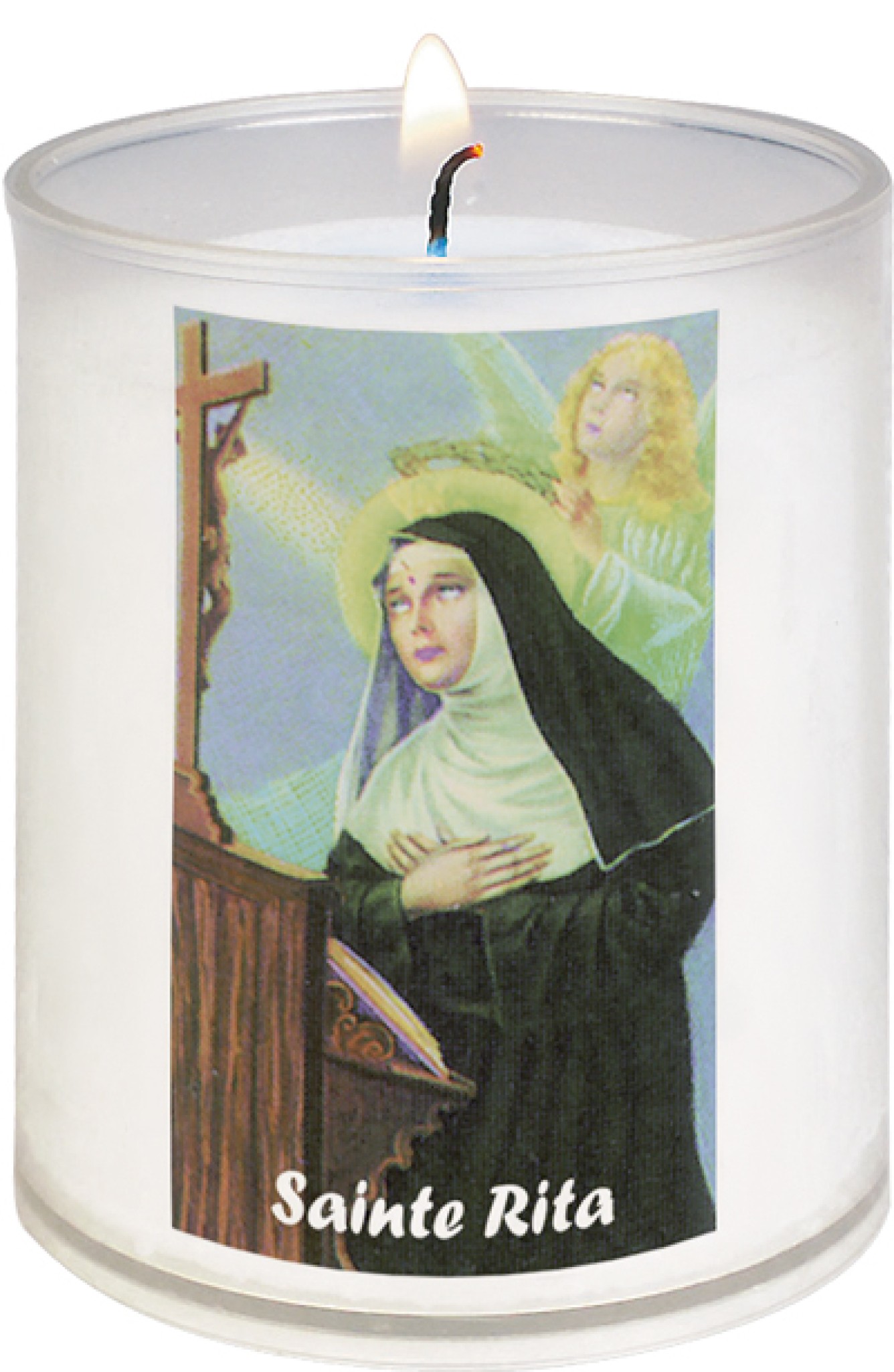 Belle veilleuse pour prier avec l'image de sainte Rita.