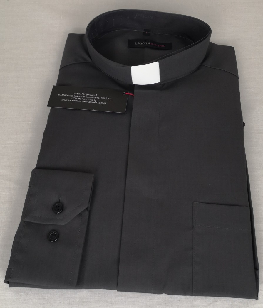 Chemise clergyman mixte polyester (45%) coton (55%) de couleur noire. Taille de la chemise clergyman: M (équivalent 39 & 40 en tour de cou) Tour de poitrine 114 cm, longueur de manche 64 cm, longueur de chemise 77. Col plastique clergyman fourni et inséré dans le col. Lavable en machine à 40°, repassage facile au fer sur faible température.