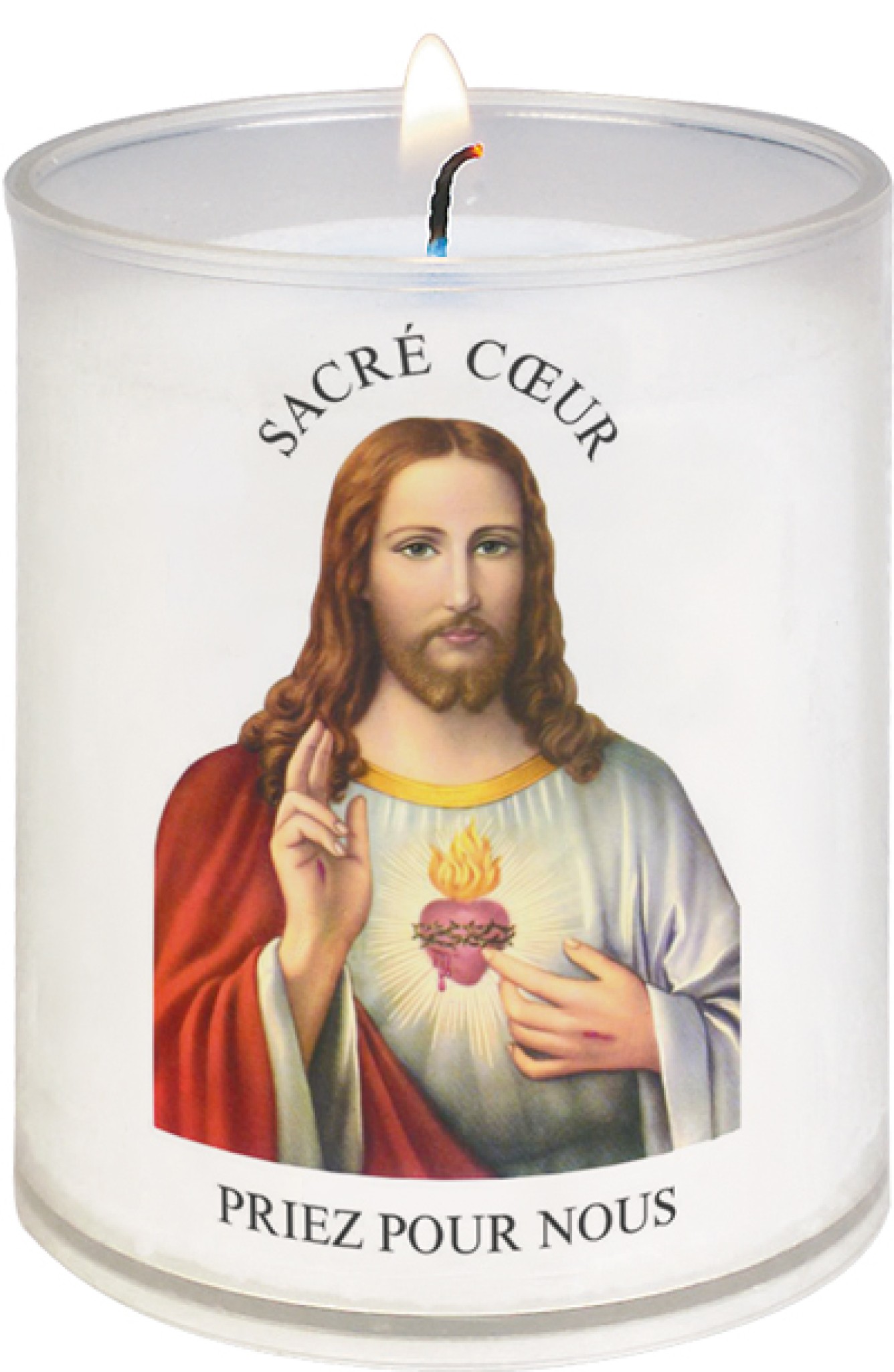 Belle veilleuse pour prier avec l'image du Sacré Coeur de Jésus.