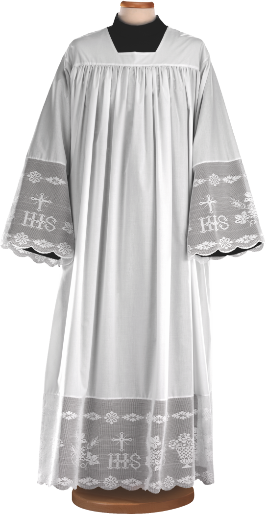 Aube liturgique encolure carrée avec dentelle - taille 150 cm