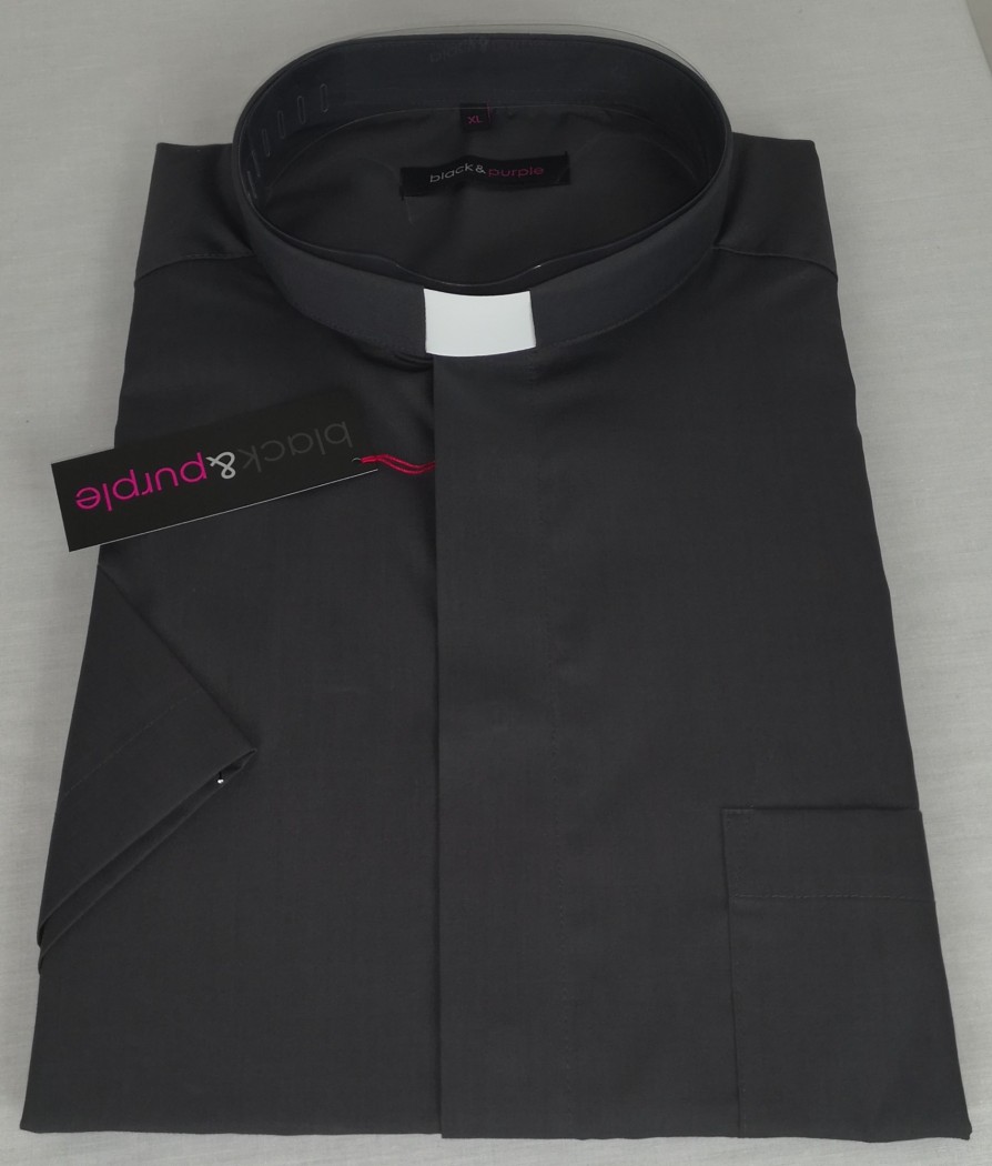 Chemise manches courtes clergyman 100 % coton de couleur noire. Taille de la chemise clergyman: S (équivalent 37 & 38 en tour de cou) Tour de poitrine 108 cm, longueur de chemise 76. Col plastique clergyman fourni et inséré dans le col. Lavable en machine à 30°, repassage facile.