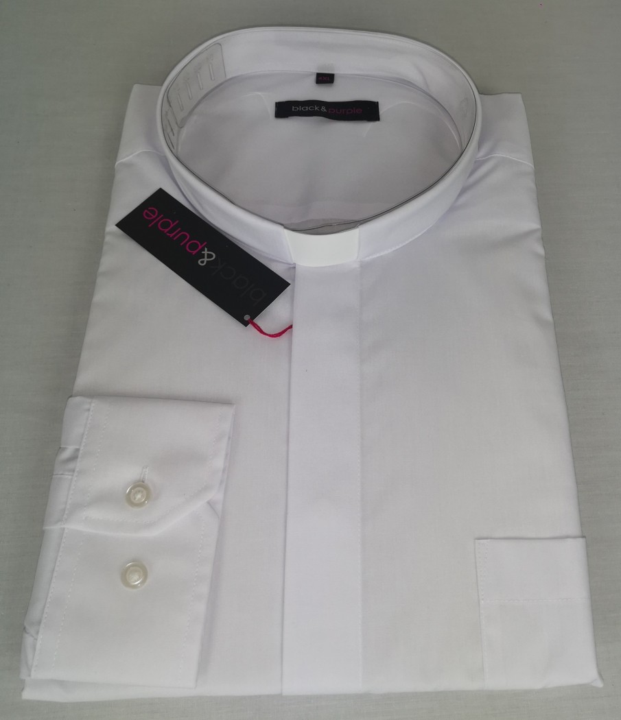 Chemise clergyman mixte polyester (45%) coton (55%) de couleur blanche. Taille de la chemise clergyman: M (équivalent 39 & 40 en tour de cou) Tour de poitrine 114 cm longueur de chemise 77 cm. Col plastique clergyman fourni et inséré dans le col. Lavable en machine à 40°, repassage facile au fer sur faible température..