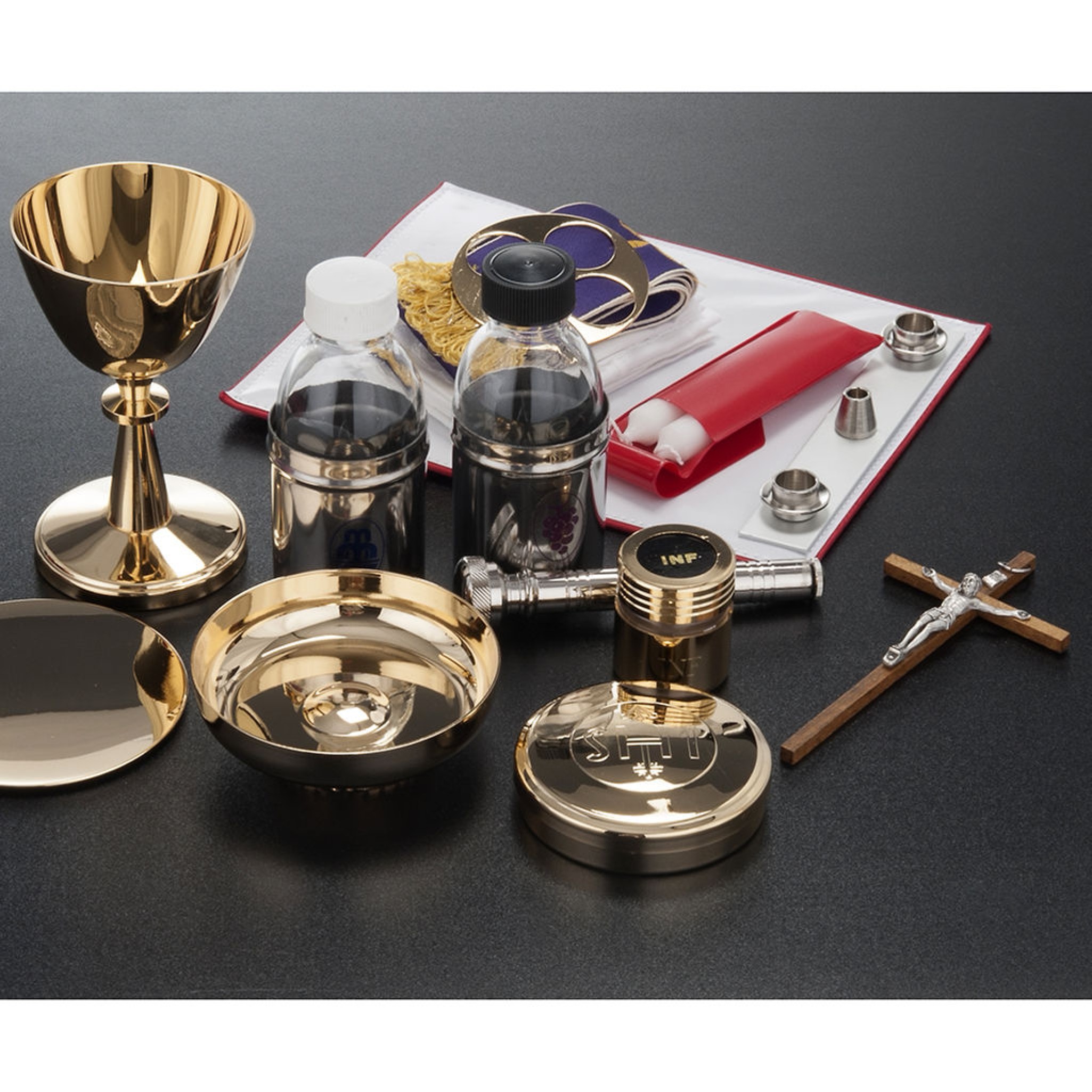 1 custode 1 coupe de communion 1 ampoule pour l'huile sainte 1 goupillon
