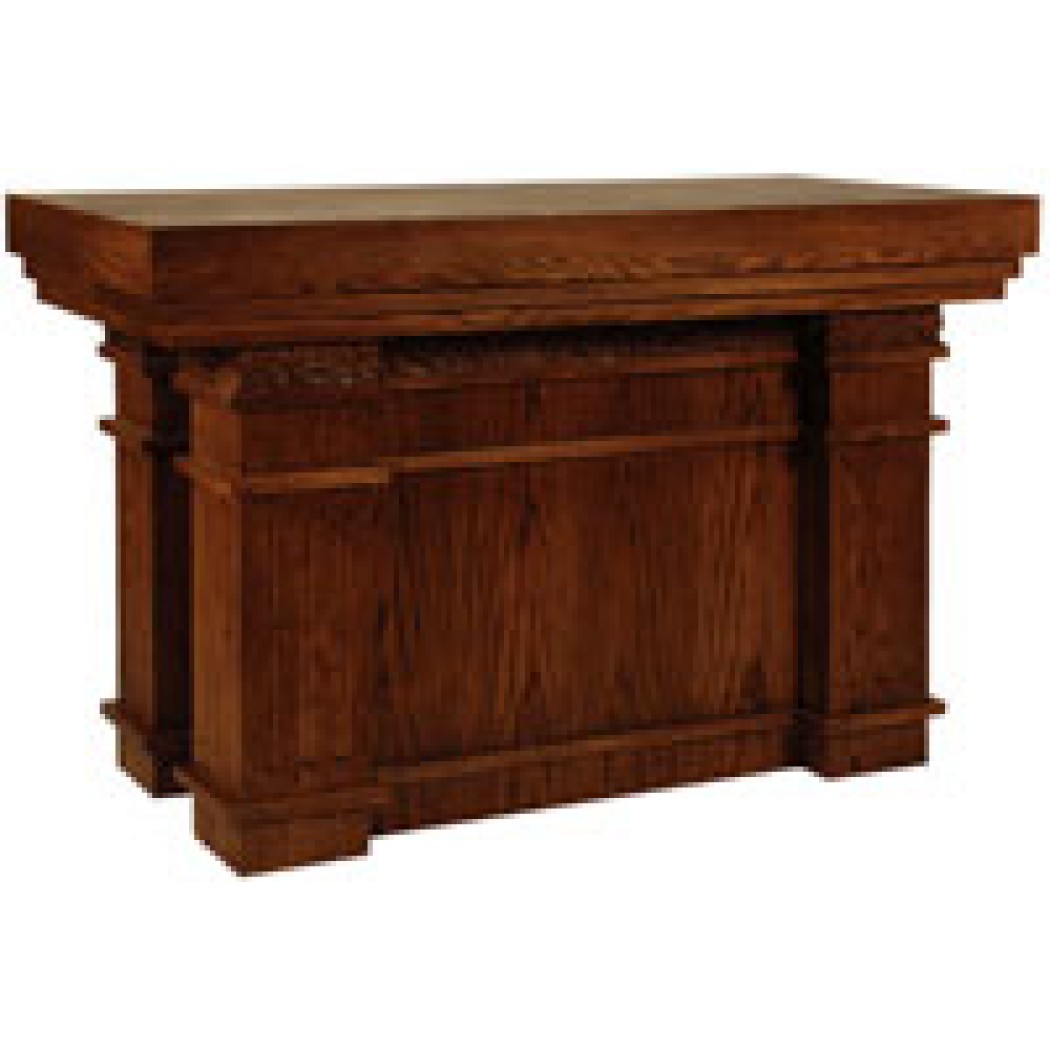 Autel réalisé en chêne massif rouge. Plusieurs essences de bois sont disponibles pour personnaliser cet autel. L'autel point central du choeur nécessite une grand qualité de fabrication, ce qui est le cas de cet autel.