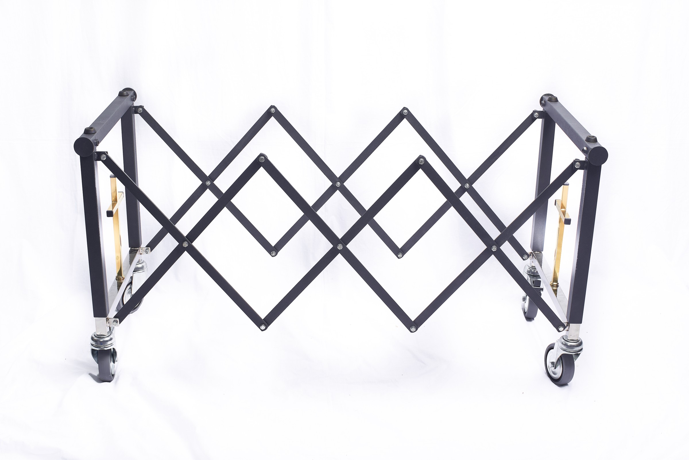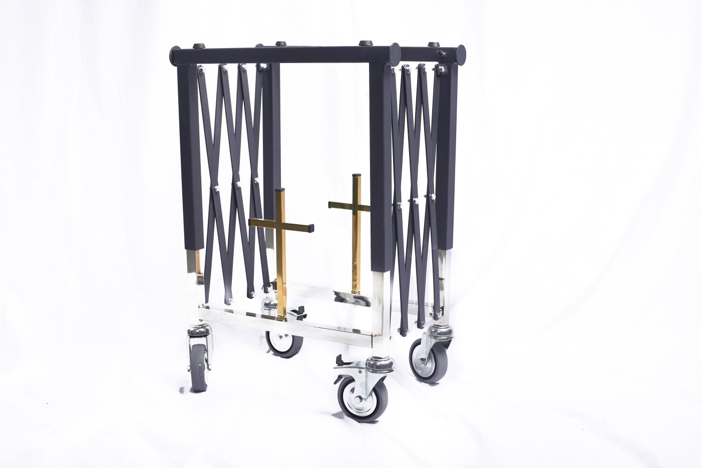 Catafalque mobile en fer noir. Rétractable et mobile (sur roue).