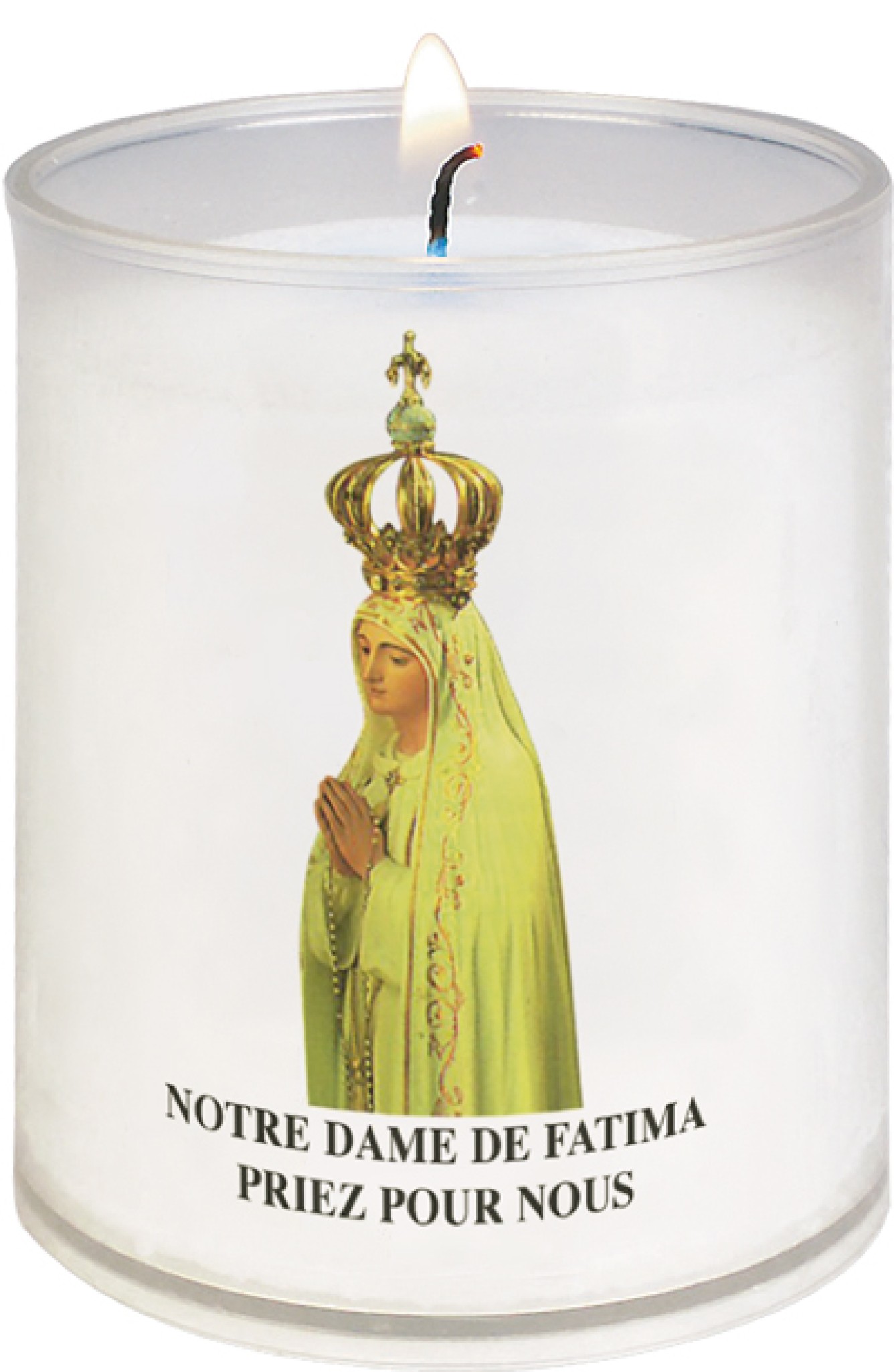 Belle veilleuses votives décorées avec un marquage de qualité pour prier avec l'image de Notre-Dame de Fatima.