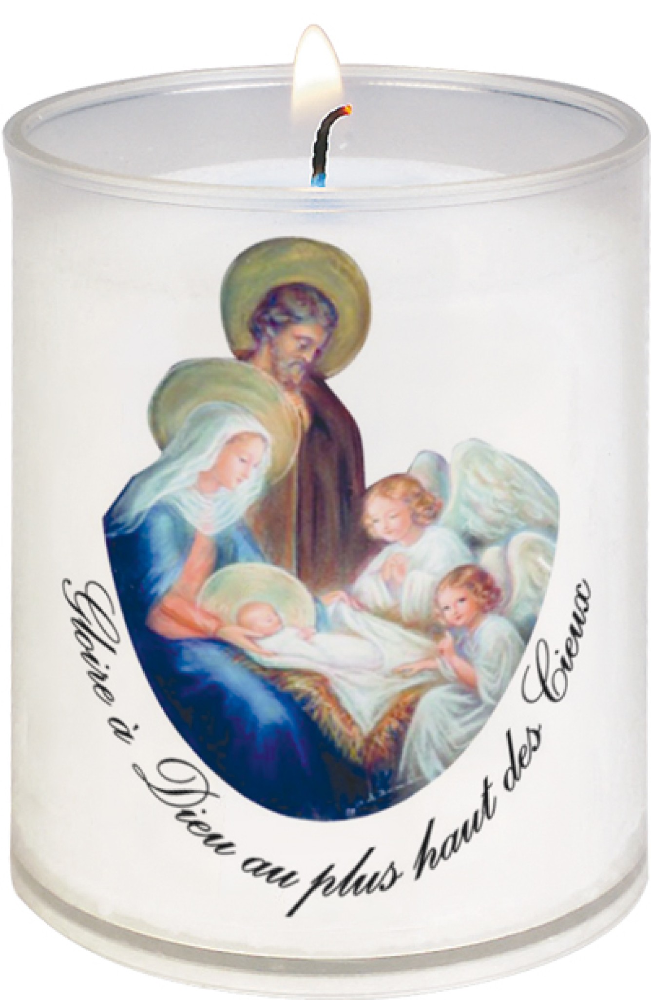Belle veilleuses votives décorées avec un marquage de qualité pour prier avec l'image de la Sainte Famille.