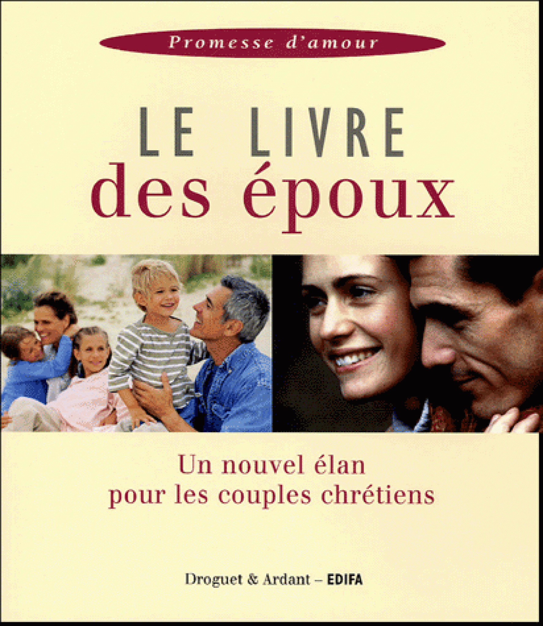 Vous avez 3, 5, 10 ans de mariage ou plus… et vous désirez prendre du temps pour donner un nouvel élan à votre amour conjugal. Le Livre des époux est pour vous. Vous avez accepté d'accompagner ceux qui se préparent au mariage. Le Livre des époux est pour vous. Vous participez à une équipe de foyers dans votre paroisse ou dans un mouvement de couples chrétiens et vous avez choisi de réfléchir sur le sens du mariage. Le Livre des époux est pour vous. Redécouvrez la grandeur du mariage et la grâce du sacrement que vous avez reçu. " De votre amour dépend l'avenir du monde et de l'Eglis