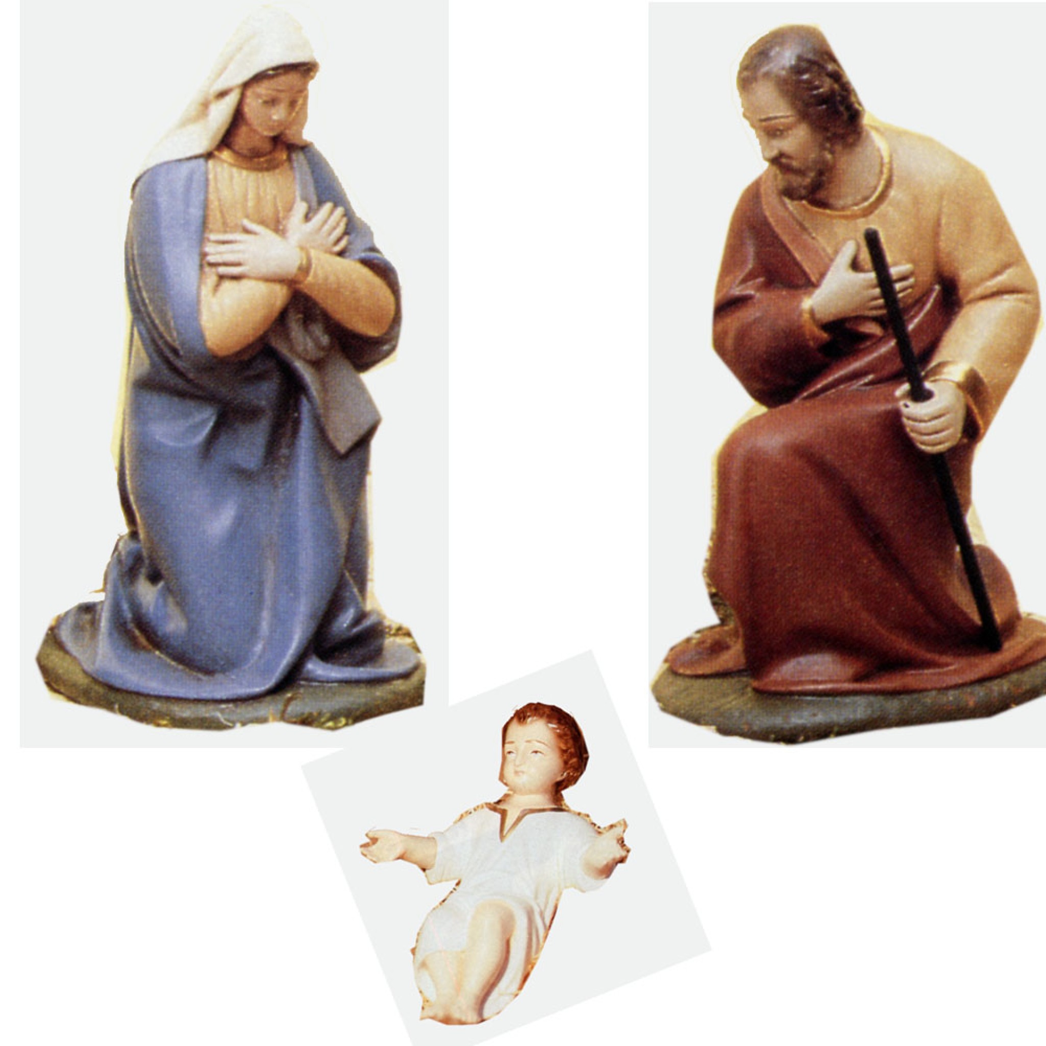 Vierge et Joseph à genoux 45 cm proportionnel pour crèche de 60 cm.